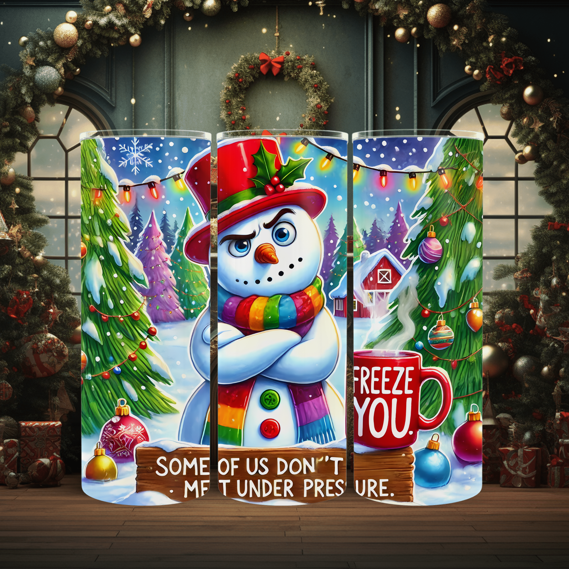 Stay festive and hydrated this holiday season with the Under Pressure 30oz Christmas tumbler. Its generous size keeps your favorite beverages hot or cold for hours, perfect for busy winter days. Designed with holiday cheer in mind, this tumbler adds a festive touch to your daily routine while ensuring convenience on the go. Whether at home, work, or holiday gatherings, enjoy drinks in style and comfort with this durable, easy-to-carry companion. Make every sip merry and bright with the Under Pressure Christmas tumbler.